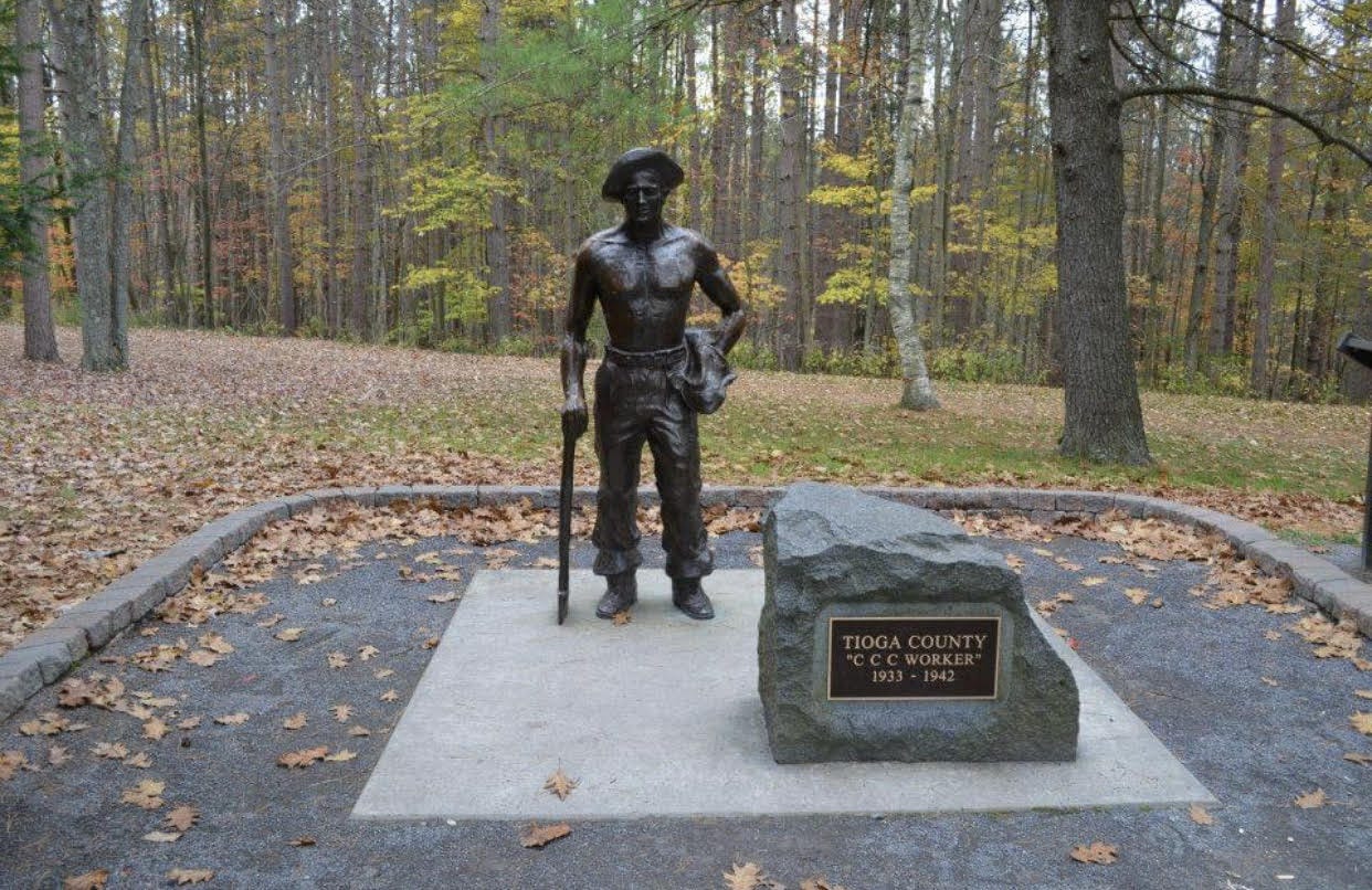 The country was divided into twelve regions for organizing the camps and nearly every city had a recruiting office. Altoona had a recruiting office and a command center that oversaw 14 nearby rural camps: Coborn, Milroy, Petersburg, Aitich, Phillipsburg, Tyler, Shawsville, Anderson, Creek, Monument, Penfield, McAlvey’s Fort, Huntingdon, Kato. There was also a camp at Blue Knob but it was assigned to another district. The Blue Knob camp built the state park there as did camps at Black Moshannon, Trough Creek, Ricketts Glen and Leonard Harrison at the site of the Pennsylvania Grand Canyon. If you visit the Pa. Grand Canyon today, there is a prominent statue of a CCC worker. If you visit Parker Dam State Park, they have a CCC museum there. If you have done outdoor activities in Pennsylvania, chances are you were taking advantage of CCC work especially if you like hiking or camping. Pennsylvania had the second highest number of camps at 141 at over 200 locations. The estimated value of CCC work in Pennsylvania was $8 billion. The same can be said if you are from another state, though my examples are from Pennsylvania, I have seen examples of CCC work in numerous other states in our travels. If you like history sites, like Gettysburg and Fort Necessity., they too benefited from the CCC work projects.
